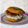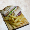 Pollo grillado, palta fileteada y panceta en mayonesa de tomillo.