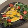 Girgolas apanadas en panko, queso tybo fundido, tomates asados, lechuga y aderezo alioli de mostaza, limón y romero.